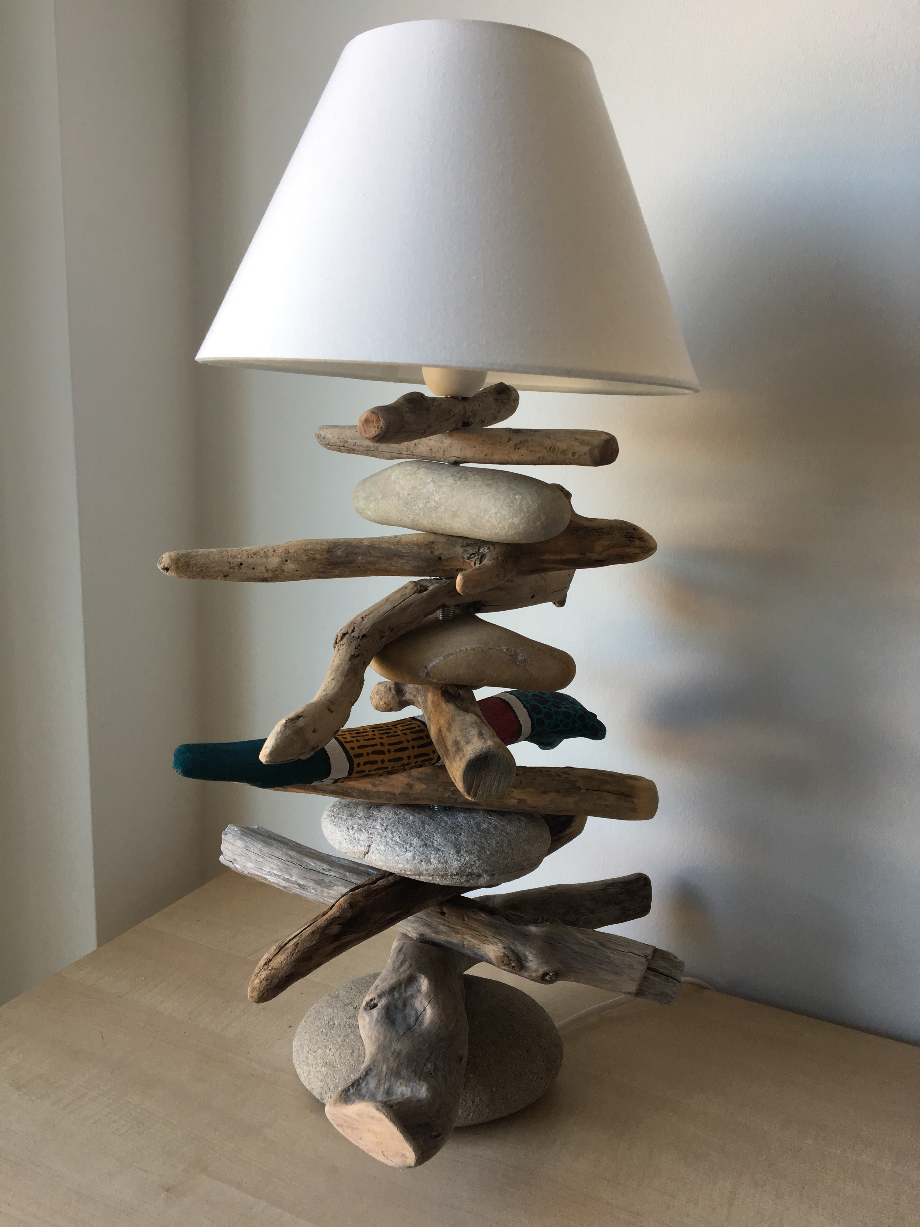 lampe de chevet bois flottés et galets